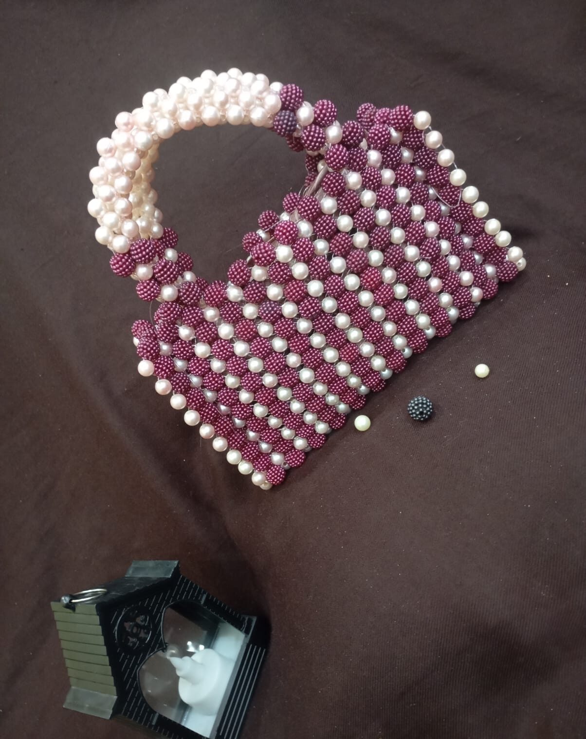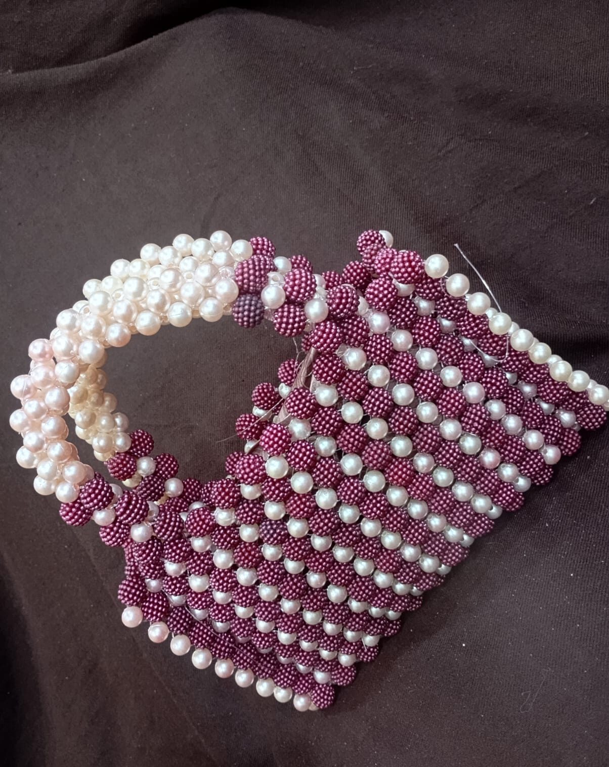 A graceful, medium-sized handbag handcrafted with 8mm pearls, available in Black, Gray, White & Off-White. Adorned with a delicate ribbon bow, it adds timeless charm and elegance to any outfit.