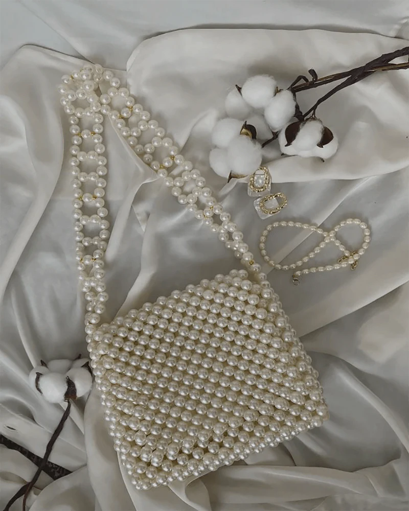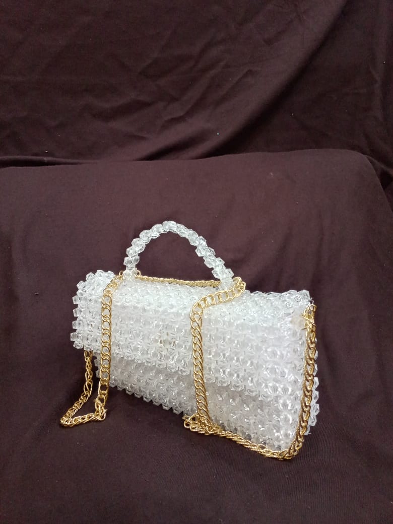 Features: Handmade beaded tote • Pearl flower strap • High-quality beads & thread work • Lightweight & durable